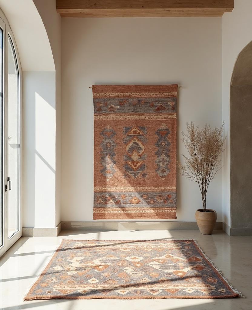 Made from natural wool and dyed with organic pigments, our Kilims are designed to last for generations. The flat-weave construction makes them durable yet lightweight, perfect for both modern minimalist spaces and richly layered traditional interiors.